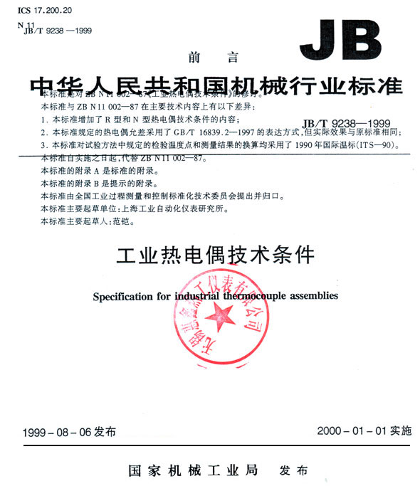 工業(yè)熱電偶技術(shù)條件