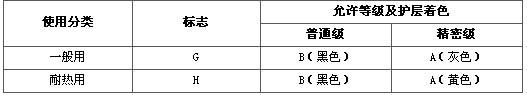 使用分類(lèi)、允許等級、護層著(zhù)色標志: